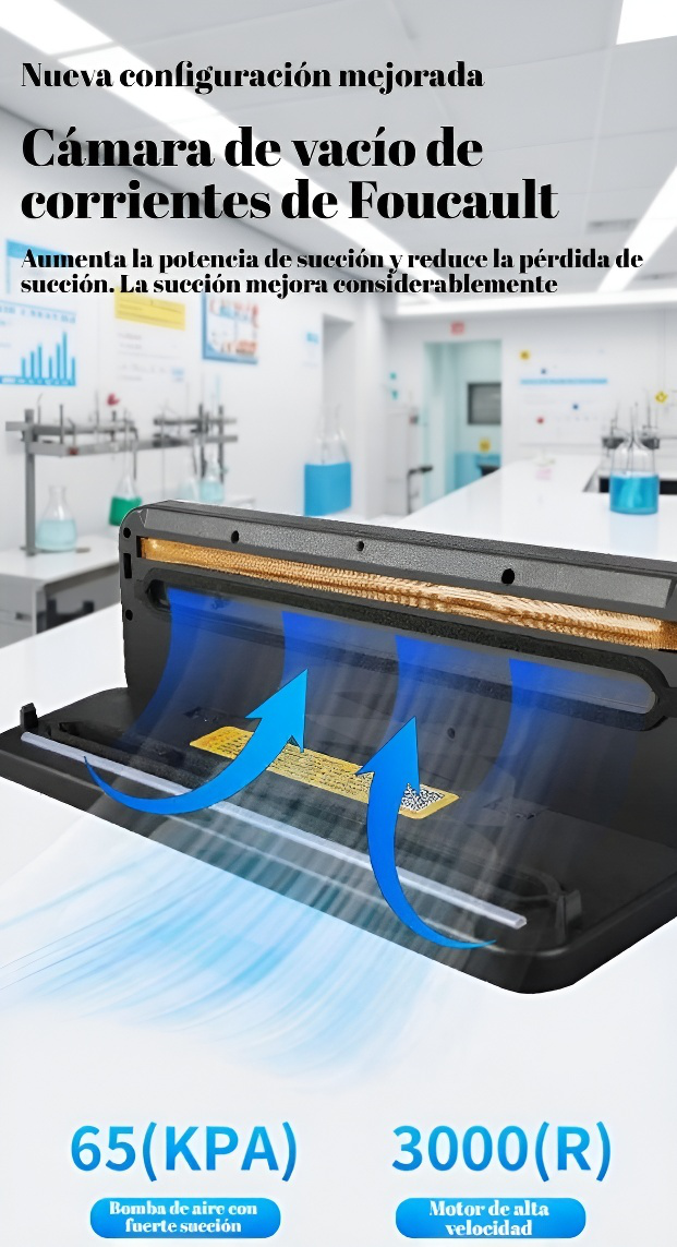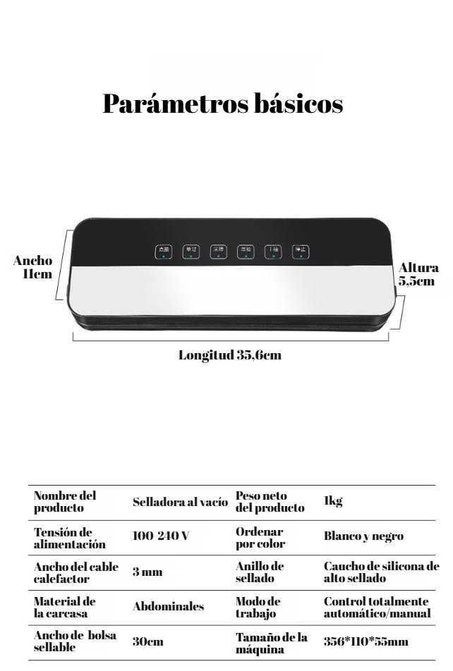 ● Selladora al vacío totalmente automática que conserva la frescura de tus alimentos hasta 7 veces más tiempo, ideal para mantener carnes, frutas y verduras en perfecto estado. ● Función de sellado seco y húmedo de doble propósito, perfecta para envasar tanto alimentos secos como marinados o con líquidos, adaptándose a todas tus necesidades en la cocina. ● Operación sencilla con un solo botón, diseñada para facilitar el uso diario, ahorrando tiempo y esfuerzo en el almacenamiento de alimentos y evitando desperdicios. ● Diseño compacto y elegante que se adapta a cualquier cocina, ahorrando espacio y ofreciendo una solución práctica para organizar tu despensa y refrigerador. ● Potente tecnología de sellado que asegura un cierre hermético, manteniendo los sabores y nutrientes de los alimentos por más tiempo y protegiéndolos de la humedad y bacterias.